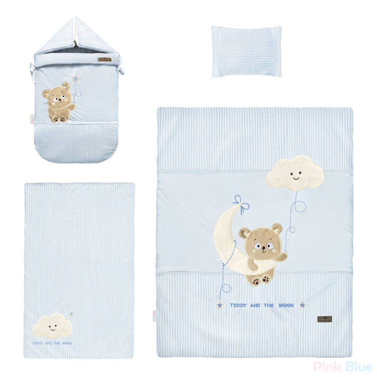 سرویس خواب نوزاد پینک بلو ،طرح خرس و ماه ،رنگ آبی، 4 تکه