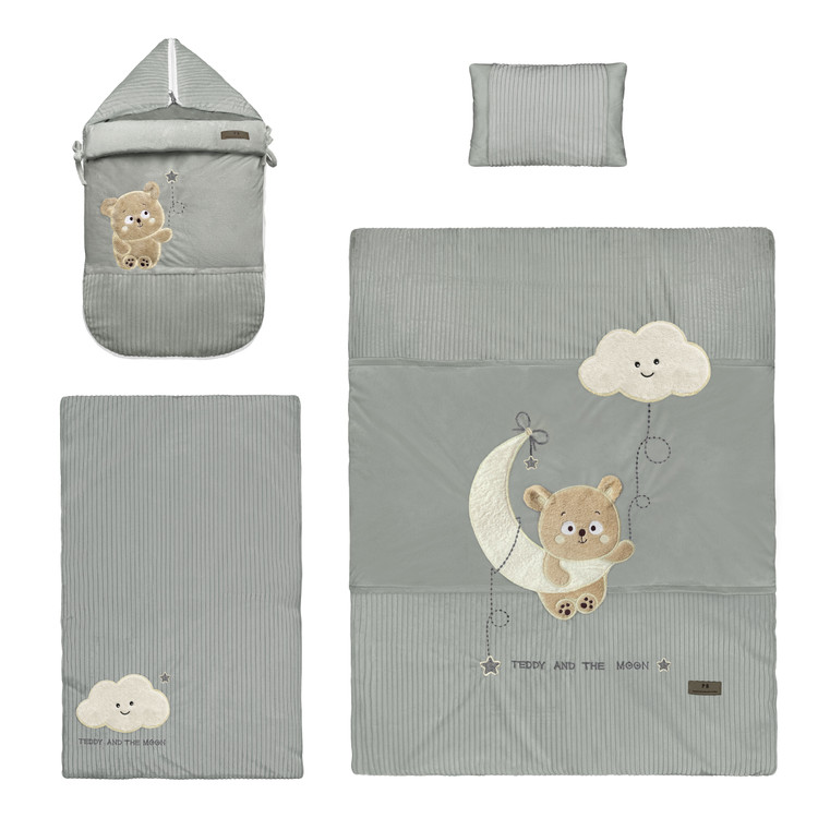 سرویس خواب نوزاد طرح خرس و ماه رنگ طوسی 4 تکه
