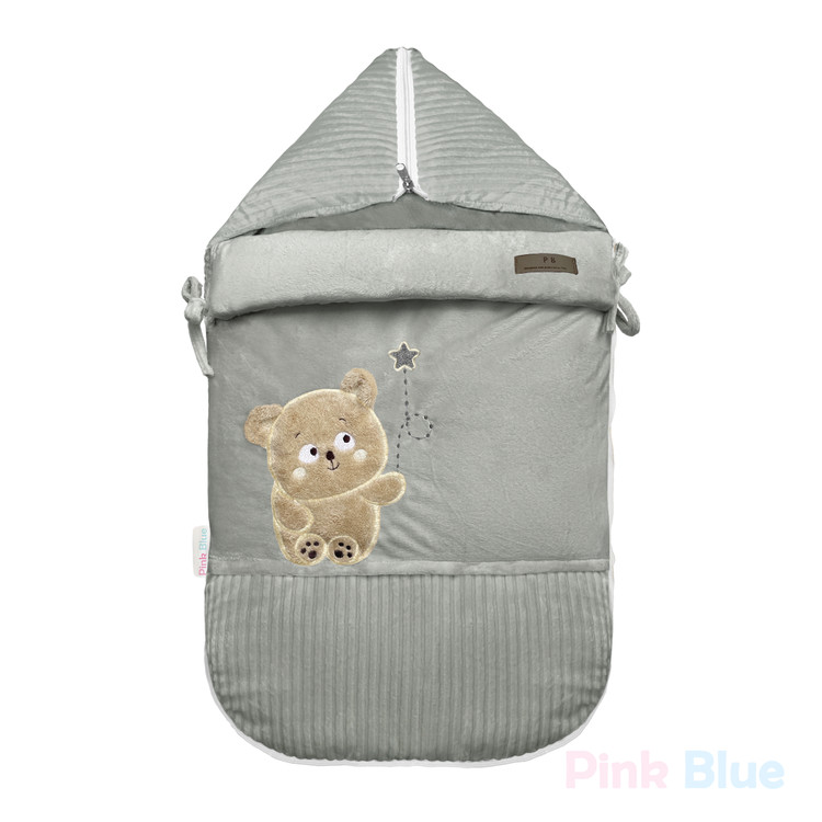 سرویس خواب نوزاد پینک بلو طرح خرس و ماه رنگ طوسی 4 تکه