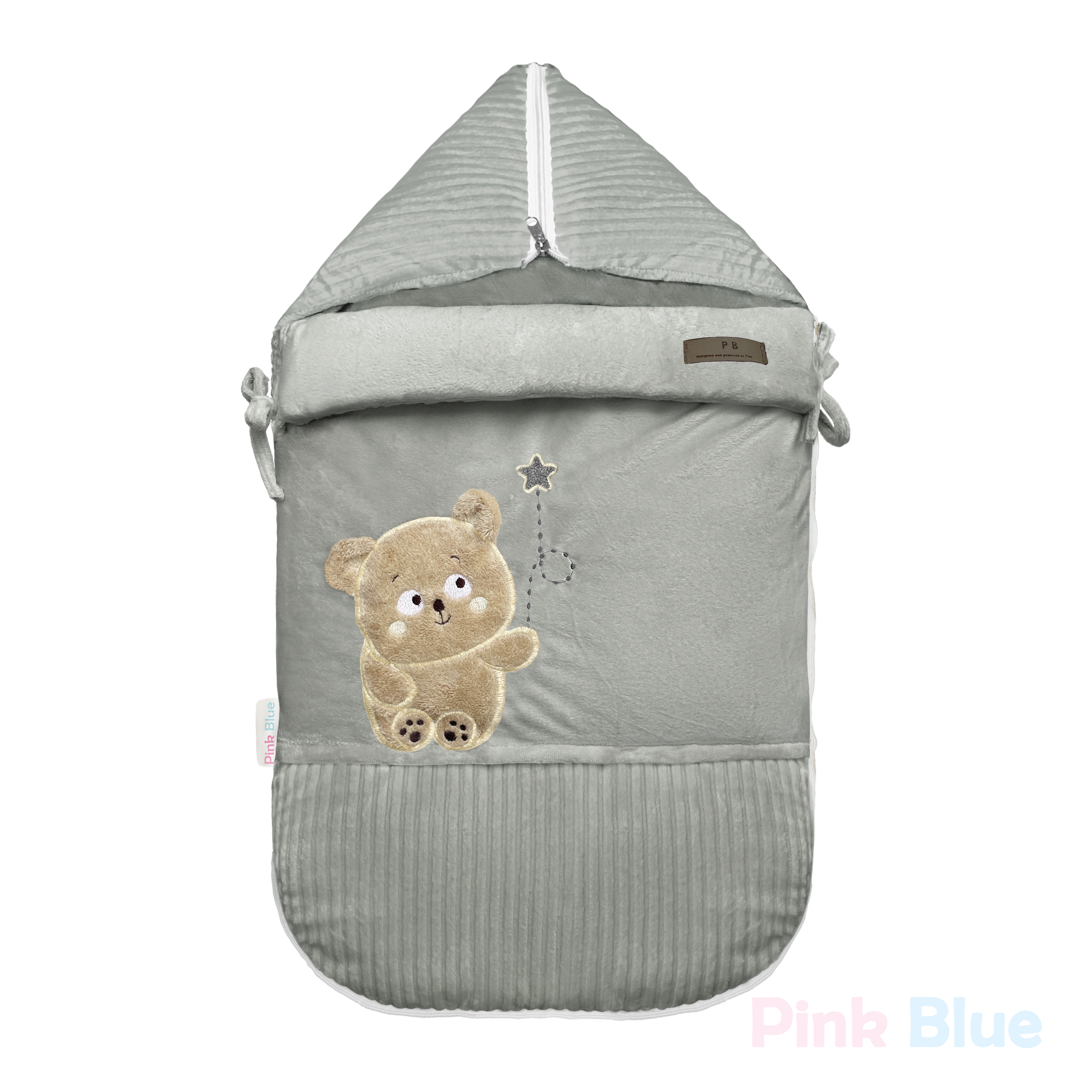 سرویس خواب نوزاد پینک بلو طرح خرس و ماه رنگ طوسی 4 تکه