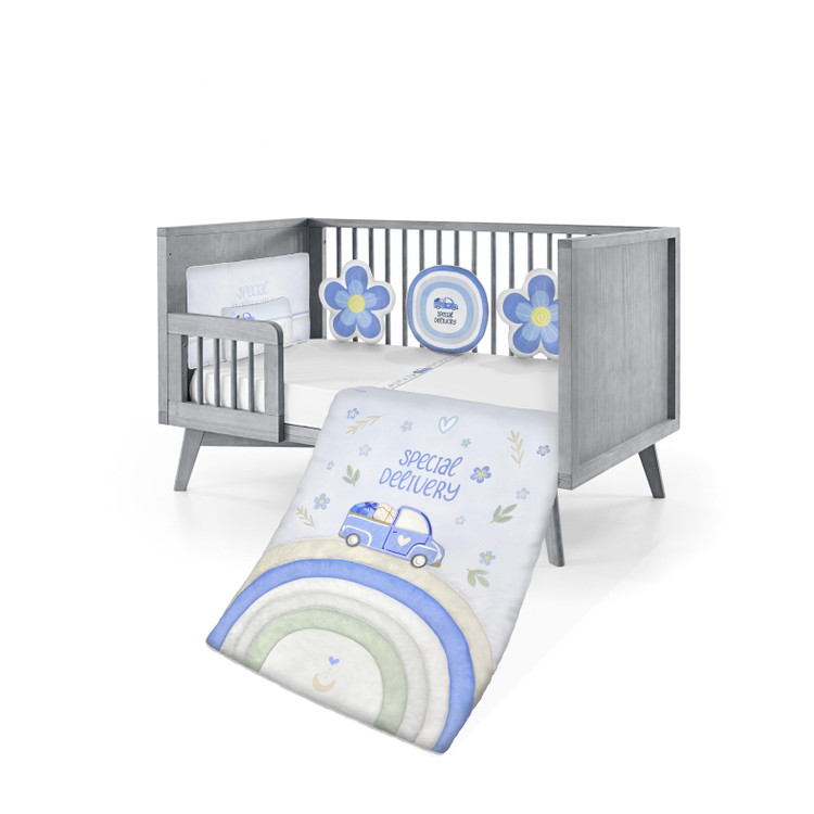 یکی از محصولات پینک بلو که با طراحی خاص و کودکانه، شادابی و انرژی را از جنس رنگ و رنگین کمان به اتاق کودک شما هدیه می کند. در رنگ بندی های ملایم آبی، سبز، صورتی، نارنجی و قرمز، اتاق خوابی مدرن برای کودک شما به ارمغان می آورد. در طراحی این سرویس روتختی سعی کردیم با برجسته کردن کاراکتر اصلی(ماشین) به جذابیت پتو بیافزاییم. در این محصول علاوه بر بالاتختی که نقش محافظ را در بالای تخت ایفا می کند، ۳ عدد کوسن از کاراکترهای طرح درنظر گرفته شده که نه تنها به زیبایی می افزاید بلکه موجب حفاظت از کودک دلبندتان در برابر برخورد با کناره های تخت می شود.