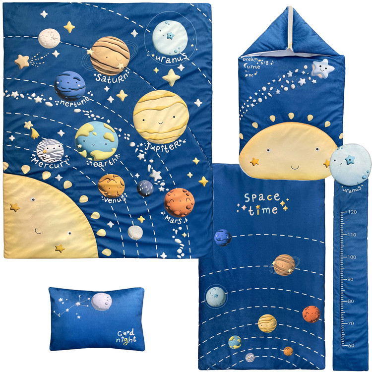 سرویس خواب نوزاد، طرح سیاره رنگ سورمهای، 5تکه