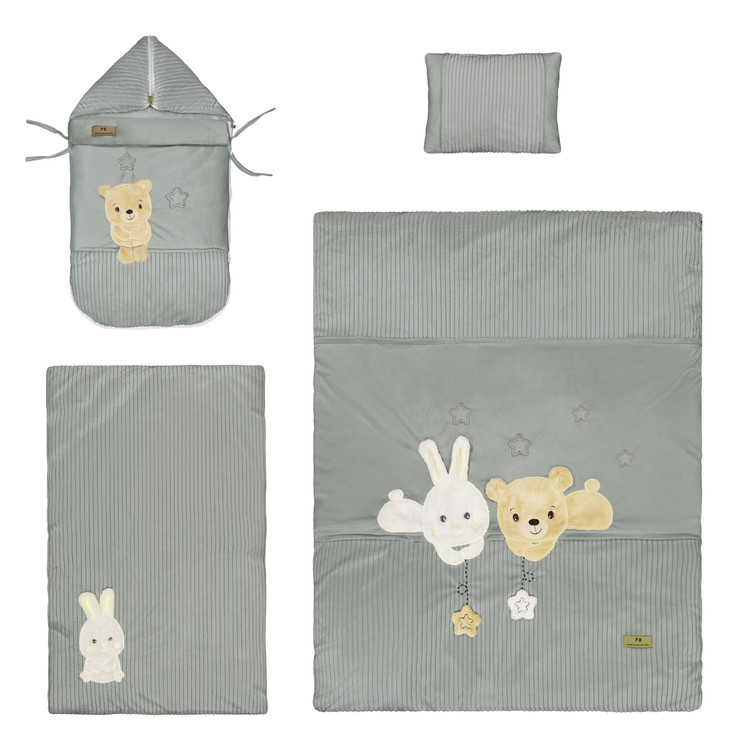 سرویس خواب نوزاد طرح خرس و خرگوش ، رنگ طوسی ،4تکه