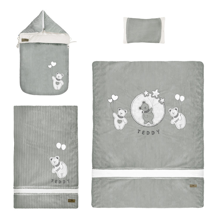 سرویس خواب نوزاد پینک بلو طرح تدی ، رنگ طوسی ، 4تکه