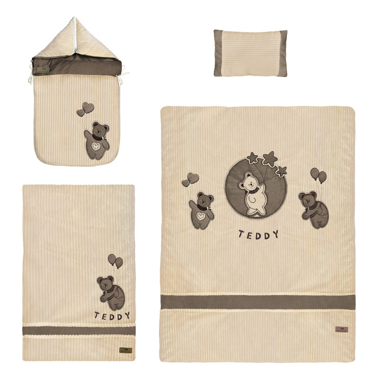سرویس خواب نوزاد پینک بلو طرح تدی ، رنگ کرم ، 4تکه