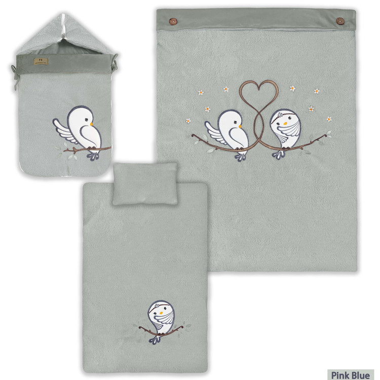 سرویس خواب نوزاد پینک بلو طرح جوجه رنگ طوسی 4 تکه